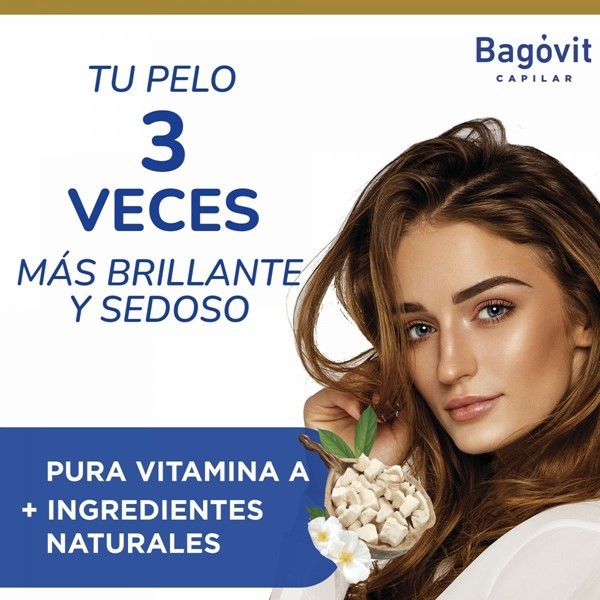 El Shampoo Brillo Luminoso Bagóvit deja tu pelo 3 veces más brillante y sedoso desde el primer uso. Su fórmula combina Pura Vitamina A con Agua de Rosas, hidratando el cabello en toda su extensión y logrando un brillo soñado. Además, contiene Aceite de Baobab, que estimula la regeneración de las células, aporta brillo y protege del encrespamiento.