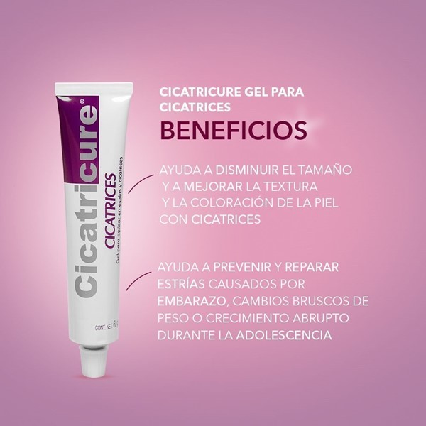 Gel formulado para aplicar en estrías y cicatrices de cirugías, cortaduras, rasguños, quemaduras y acné. Ayuda a disminuir el tamaño y a mejorar la textura y coloración de la piel con cicatrices.