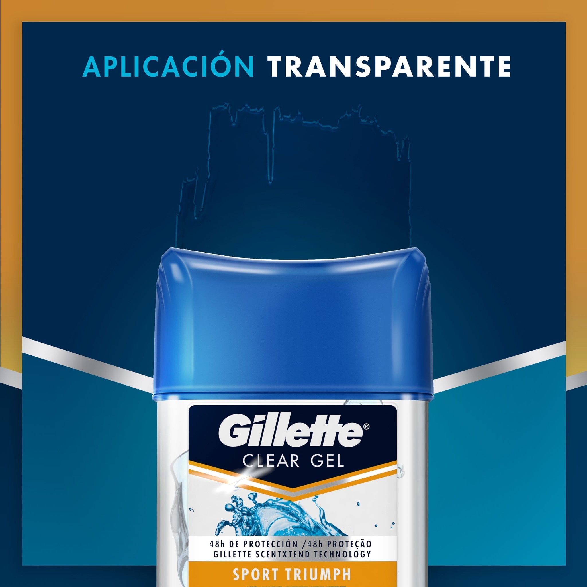 NombreDesodorante Antitranspirante para hombre Gillette Clear Gel Sport Triumph x 82 gr DescripciónGillette 3X Sistema de Triple Protección: Te mantiene seco