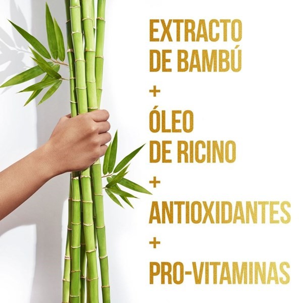 El acondicionador trata el cabello y las cutículas, dejándolo más fuerte y sedoso, y proporciona más resistencia al cabello a través de una poderosa hidratación. Con extracto de bambú, aceite de ricino y cafeína. Contiene 0% de sulfatos, parabenos y aceites minerales. Los ingredientes principales son una combinación de fuerza, flexibilidad y fuerte crecimiento: extracto de bambú, más fuerte que la madera, el hormigón y el acero, y flexible con el viento, sin romperse; el aceite de ricino, rico en omega 9, tiene poder hidratante y pH equilibrado; La cafeína, conocida por promover la regeneración celular, también mejora la circulación sanguínea. Contiene 0% parabenos, tintes y aceites minerales.