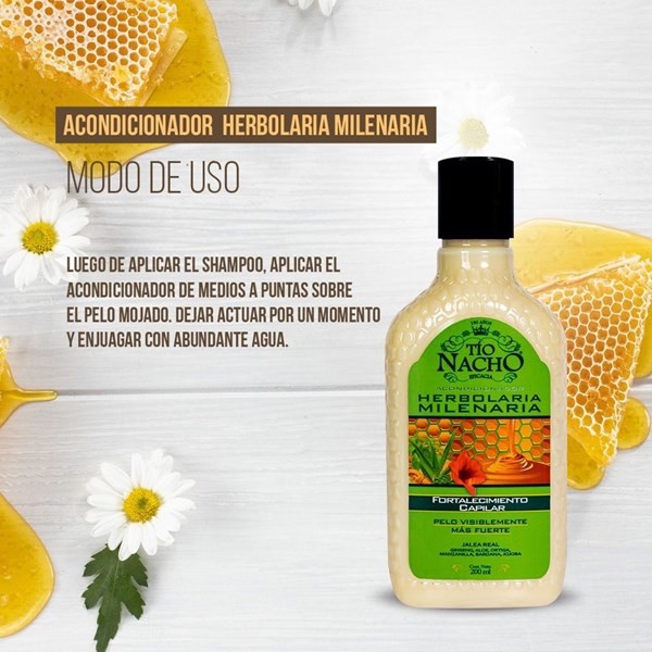 Acondicionador Tío Nacho Herbolaria Milenaria, con jalea real, ortiga y extractos anti caída de origen natural